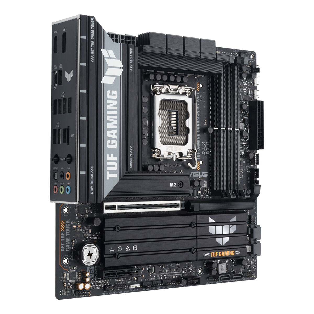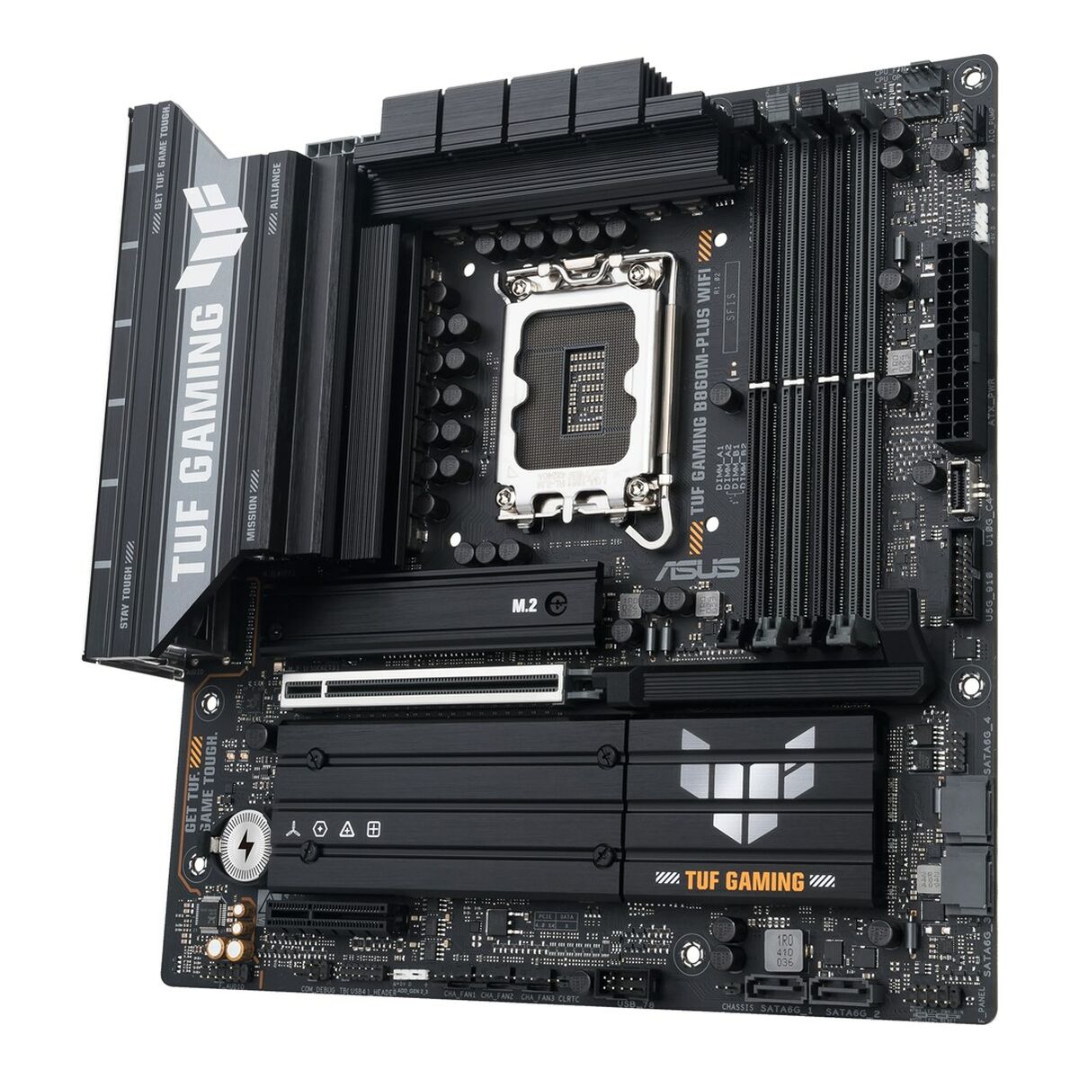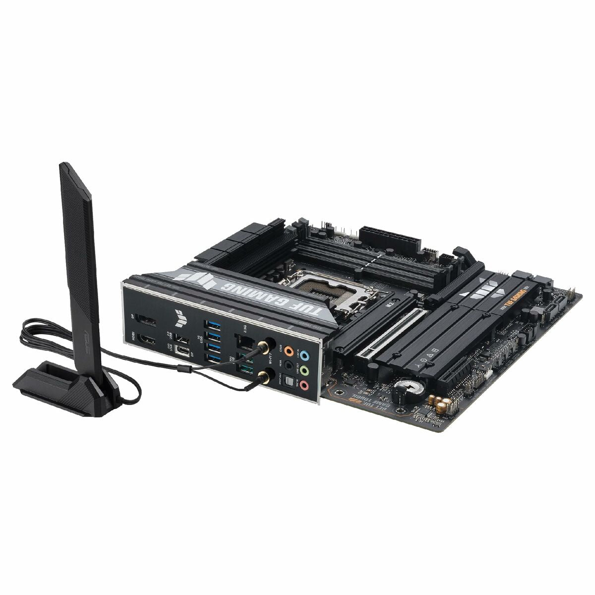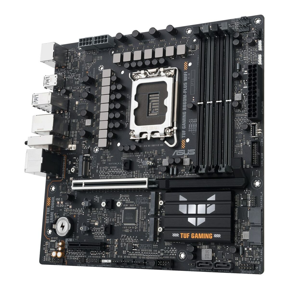 The Asus TUF GAMING B860M-PLUS WIFI motherboard is a Motherboard designed to provide a solid high-performance platform for desktop systems compatible with Intel processors, thanks to its Intel B860 chipset and LGA 1851 (Socket V1) socket. This MicroATX (mATX) form factor motherboard combines space efficiency with advanced features, ideal for compact builds without sacrificing capacity or connectivity. Among its features, it includes built-in wireless connectivity via Wi-Fi and Bluetooth, offering flexible options for wireless device connections and an optimized network experience. It also supports Gigabit Ethernet, ensuring fast and stable data transfer for online gaming or high-bandwidth tasks. Its black design along with the build quality typical of the TUF Gaming line ensures durability and resistance to intensive use. Compatible with Windows 11 systems and aimed at users requiring reliability and good performance in modern desktop setups, this Asus motherboard suits both gaming entertainment and light professional environments. Overall, the Asus TUF GAMING B860M-PLUS WIFI represents a balanced microsystem choice for current configurations demanding advanced technologies and versatile connectivity.
