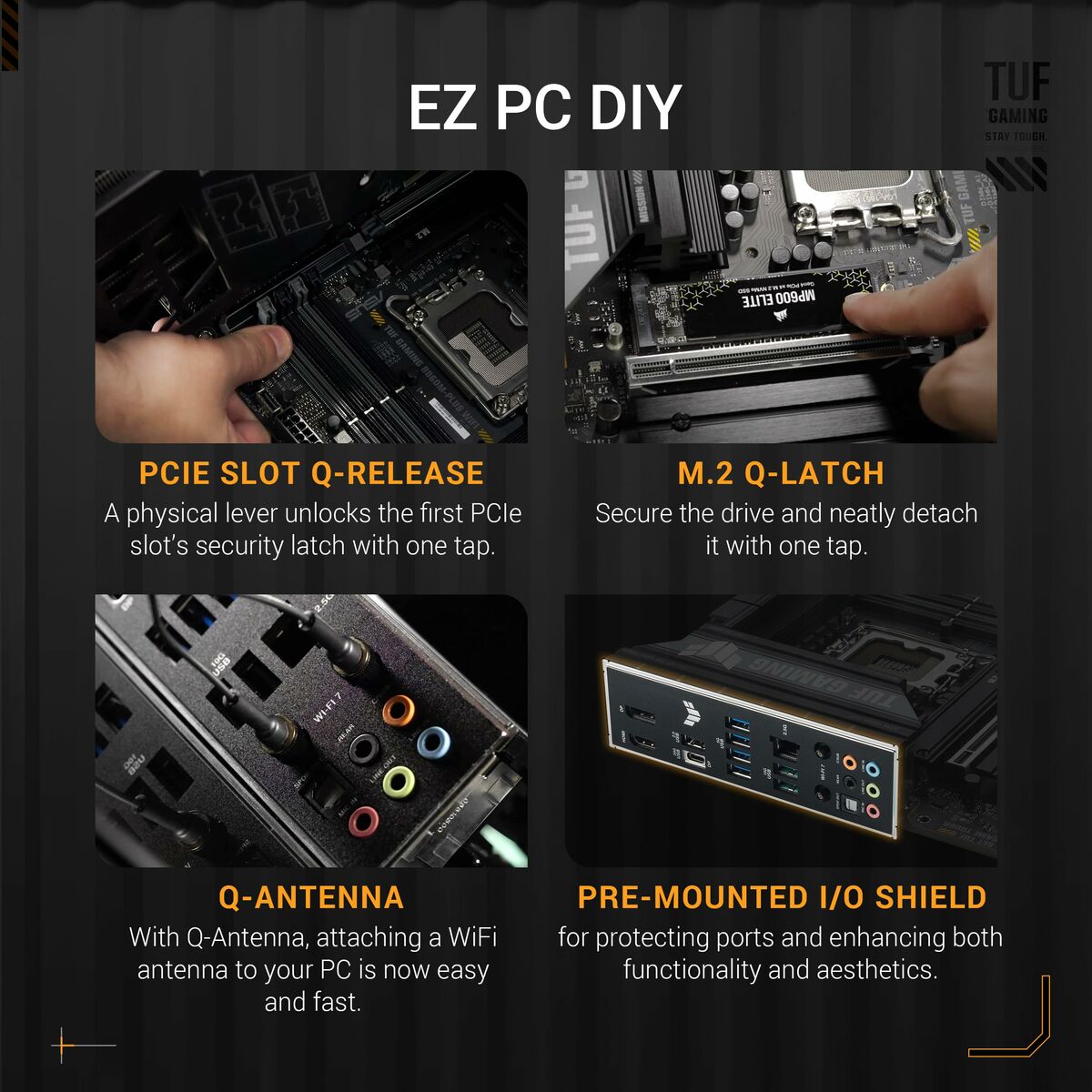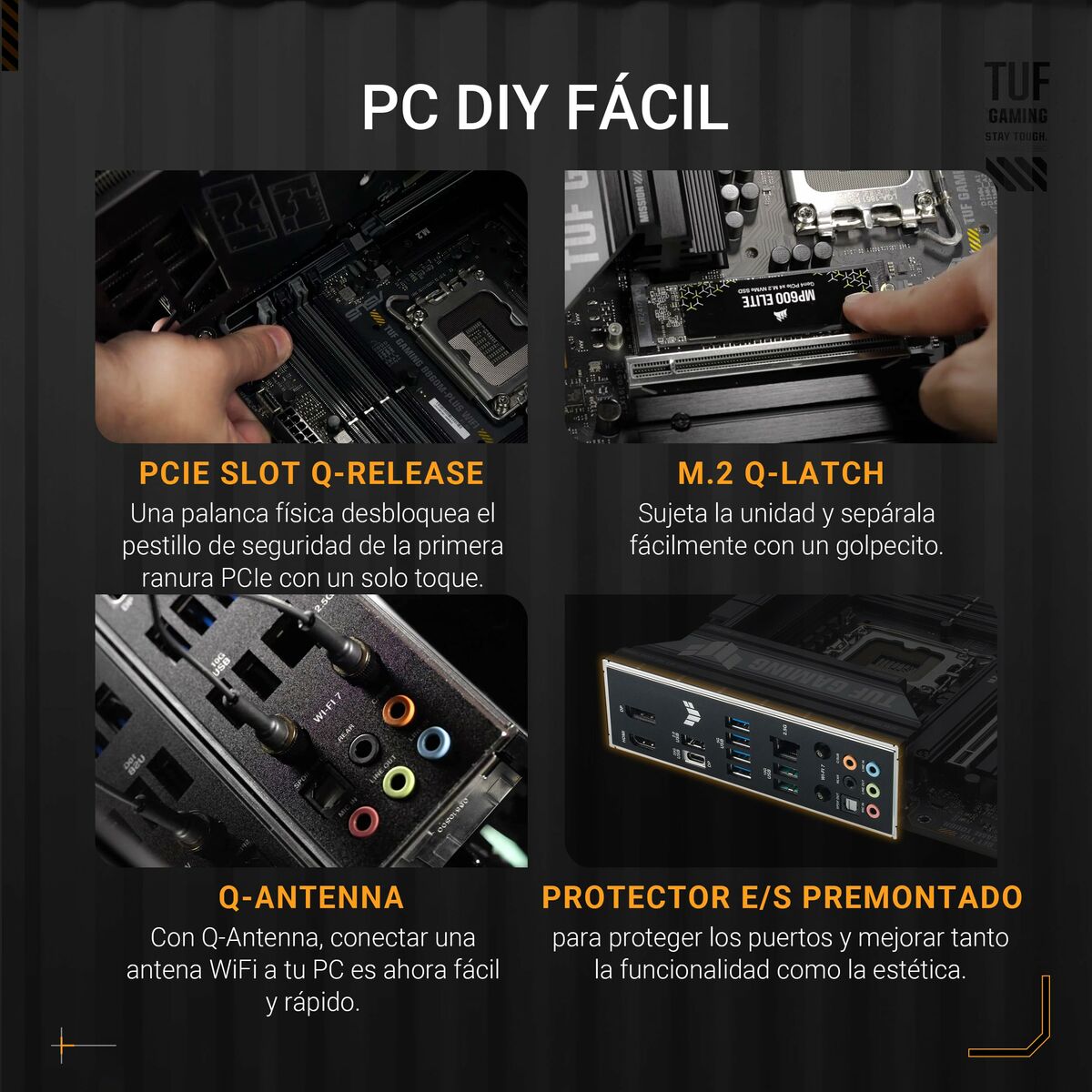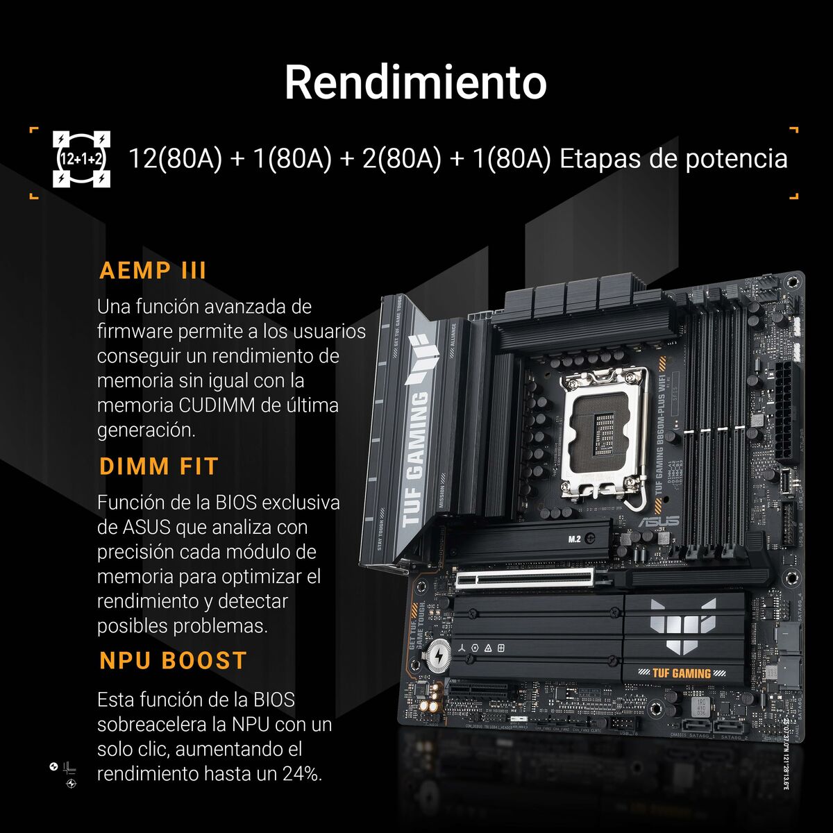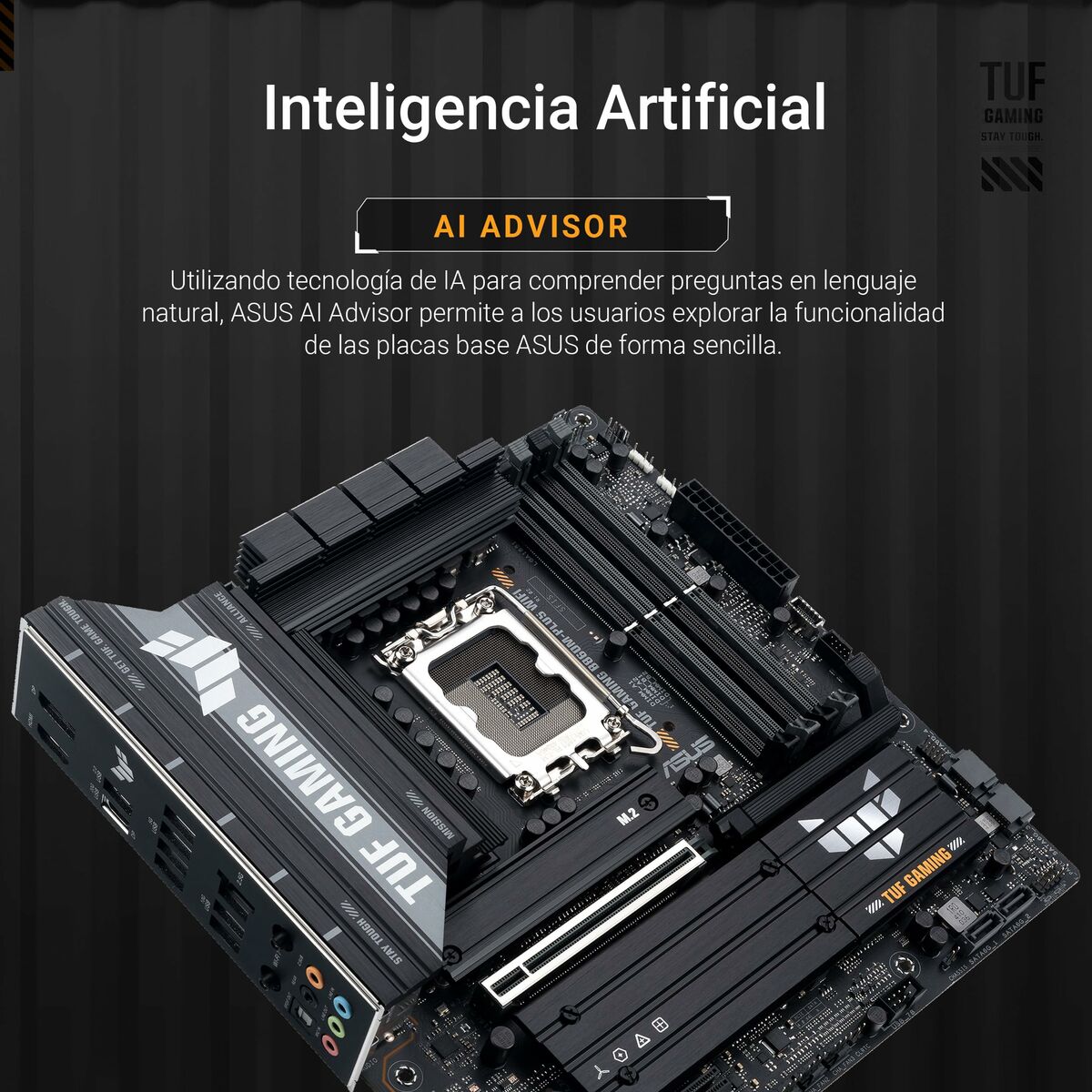 The Asus TUF GAMING B860M-PLUS WIFI motherboard is a Motherboard designed to provide a solid high-performance platform for desktop systems compatible with Intel processors, thanks to its Intel B860 chipset and LGA 1851 (Socket V1) socket. This MicroATX (mATX) form factor motherboard combines space efficiency with advanced features, ideal for compact builds without sacrificing capacity or connectivity. Among its features, it includes built-in wireless connectivity via Wi-Fi and Bluetooth, offering flexible options for wireless device connections and an optimized network experience. It also supports Gigabit Ethernet, ensuring fast and stable data transfer for online gaming or high-bandwidth tasks. Its black design along with the build quality typical of the TUF Gaming line ensures durability and resistance to intensive use. Compatible with Windows 11 systems and aimed at users requiring reliability and good performance in modern desktop setups, this Asus motherboard suits both gaming entertainment and light professional environments. Overall, the Asus TUF GAMING B860M-PLUS WIFI represents a balanced microsystem choice for current configurations demanding advanced technologies and versatile connectivity.