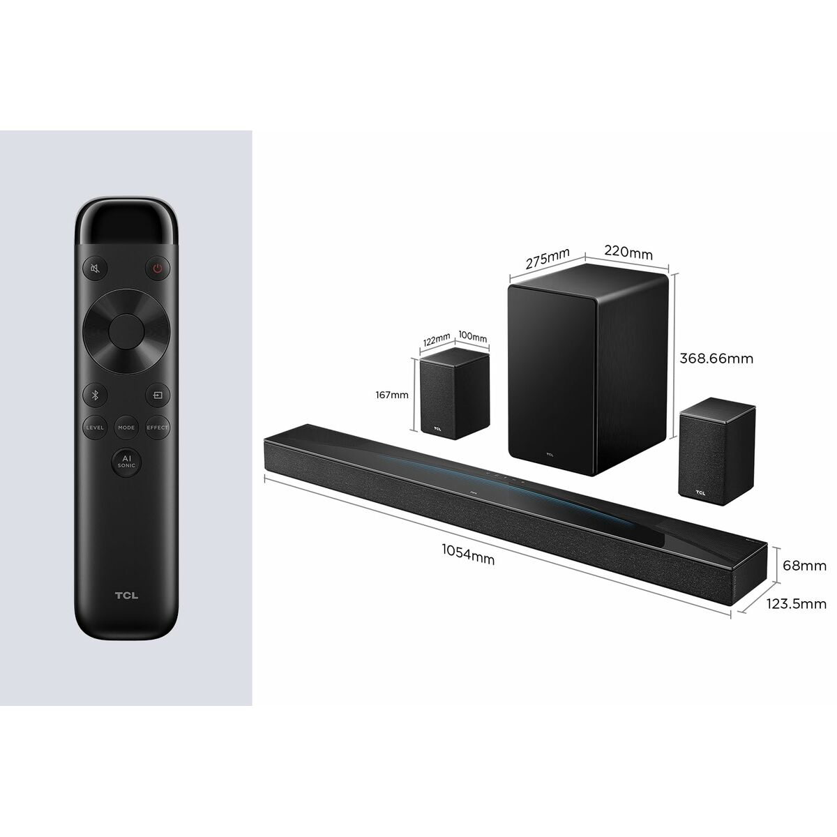 The TCL Q85HE soundbar is a device designed to enhance home audio experience with a titanium-colored finish that adds a modern and elegant look. This soundbar features advanced connectivity technology, including Bluetooth 5.3 and Wi-Fi, providing a stable and fast wireless connection with multiple devices, allowing playback from smartphones, TVs, or other compatible devices without loss of quality. It also includes the eARC (Enhanced Audio Return Channel) function, which optimizes audio transmission from digital TVs, ensuring clear, delay-free sound, ideal for home entertainment systems. Its 30 W power output delivers sufficiently powerful sound for medium-sized rooms, significantly improving dialogue clarity and bass reproduction, essential for enjoying movies, music, or video games. This model combines functionality with a compact, easy-to-install design, making it a balanced option for users looking to upgrade their TV audio without technical complications. The TCL Q85HE soundbar represents a practical and versatile technological solution focused on delivering pure sound and efficient connectivity for the modern home.