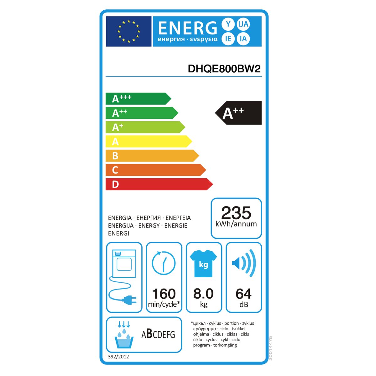 The Hisense DHQE800BW2 condenser dryer is an appliance designed to provide efficient and gentle drying thanks to its heat pump system, which optimizes energy consumption and protects fabric fibers by operating at lower temperatures. It features a 8 kg capacity, suitable for medium-sized families, and offers 16 specialized drying programs including options like auto-adjust, baby care, bedding, cotton, allergy hygiene, shirts, sportswear, synthetic, custom programming, towels, and wool, allowing the drying process to be tailored to fabric type and moisture level. The dryer is mainly available in white color, with a compact design measuring approximately 60 cm wide (59.5 cm nominal), making it easy to fit even in tight spaces. Its built-in display provides a clear interface for selecting and monitoring programs, while integrating a child lock system as an added safety feature. The combination of materials, including stainless steel details, enhances its durability and modern look. This model ensures careful drying that preserves garment quality, reduces wrinkles, and allows hygienic treatment, especially relevant for sensitive or allergy-prone users. The heat pump technology, along with the variety of cycles, suitable capacity, and safety functions, make this dryer a practical and efficient choice within the mid-range home care appliance segment. Overall, the Hisense DHQE800BW2 delivers balanced performance that meets everyday drying needs with energy savings and fabric care.