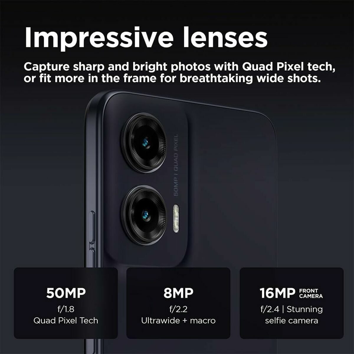 The Motorola G35 5G is a smartphone designed to offer a balance between performance and functionality in the mid-range segment. It features a large 6.72-inch display, providing a comfortable and clear visual experience for consuming multimedia content or performing daily tasks with sharpness. It is equipped with 8 GB of RAM, ensuring efficient multitasking and smooth system response. Its 256 GB storage capacity allows you to save a large number of files, apps, and photos without worrying about space. The Motorola G35 5G includes 5G connectivity, enabling fast and stable connections for browsing and downloading data. In terms of design, it is available in black, gray, and Midnight Black, offering sober and elegant options. It also stands out for including a versatile camera shutter button and a USB-C port, which provides fast charging and a standard connection for accessories. Its compact size of 76 mm width makes it comfortable to hold and carry. Additionally, it features built-in GPS for precise location and navigation support. The device meets IP54 protection standards, providing basic resistance to dust and water splashes, increasing its durability in everyday environments. Overall, the Motorola G35 5G is a solid choice for users seeking a phone with good multimedia features, ample storage, and advanced connectivity, while maintaining a functional and durable design.