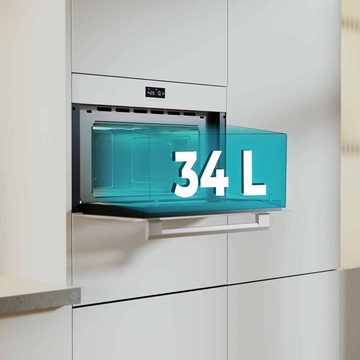 The integrated microwave MW703800 from Cecotec is designed to provide an efficient and modern kitchen solution, blending elegantly with furniture thanks to its white color and compact design that eases installation. It has a 34-liter capacity, ideal for preparing everything from simple dishes to more elaborate meals, adapting to various family or personal needs. Its features include a built-in timer that allows precise cooking time control to avoid overheating or undercooked food, and a grill function, useful for browning or gratinating food to offer more appealing textures and finishes. It also includes a defrost function, facilitating the preparation of frozen foods without long waiting or manual thawing. Its built-in display provides ease and clarity in viewing settings and available modes, while the touch control offers an intuitive and modern interface, speeding up microwave programming and operation without complications. Made with durable materials like metal and glass, it ensures longevity and ease of cleaning and maintenance. Additionally, this model is a practical choice for those seeking a functional appliance within an integrated environment that combines aesthetics and simple technology. Overall, the Cecotec MW703800 represents a balanced option for those who value a microwave with adequate capacity and basic, accessible functions, optimizing both space and daily kitchen use.