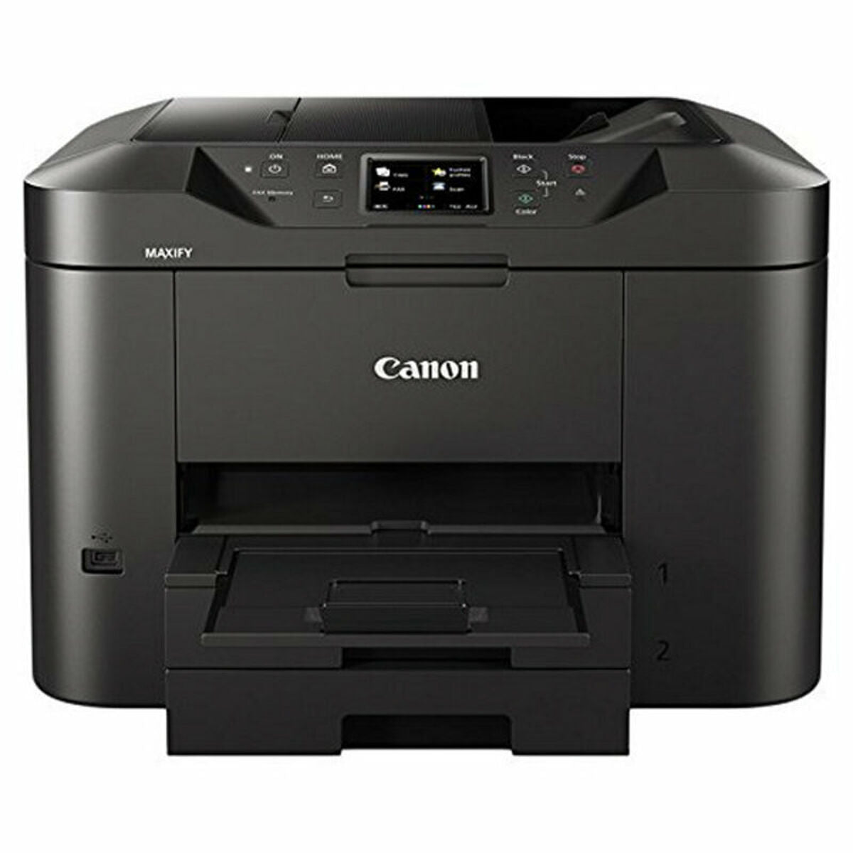 The Canon MB2750 Multifunction Printer is part of the renowned MAXIFY series, designed to meet printing and document management needs in professional and home environments that require efficiency and quality. This printer features advanced inkjet printing technology that ensures sharp results and accurate colors, suitable for both black-and-white and color documents. It stands out for its high print speed of up to 24 pages per minute (ppm), allowing optimized work times and increased productivity in offices and high-demand printing spaces. It also includes a built-in color LCD touchscreen, which simplifies navigation through menus and functions, making tasks like copying, scanning, and direct device setup easier without the need for a computer. This color screen provides a more intuitive and accessible user experience, enabling quick and direct handling. Thanks to its multifunction capability, it not only works as a printer but also combines scanner and copier functions, offering versatility in a compact and modern device. Canon offers with this model a balanced solution between performance, quality, and ease of use, suitable for professionals and small offices that require a reliable device with advanced features and user-friendly design. In summary, the Canon MB2750 is an inkjet multifunction printer that combines speed, print quality, and a convenient touchscreen interface, positioning itself as an efficient option for everyday document management.