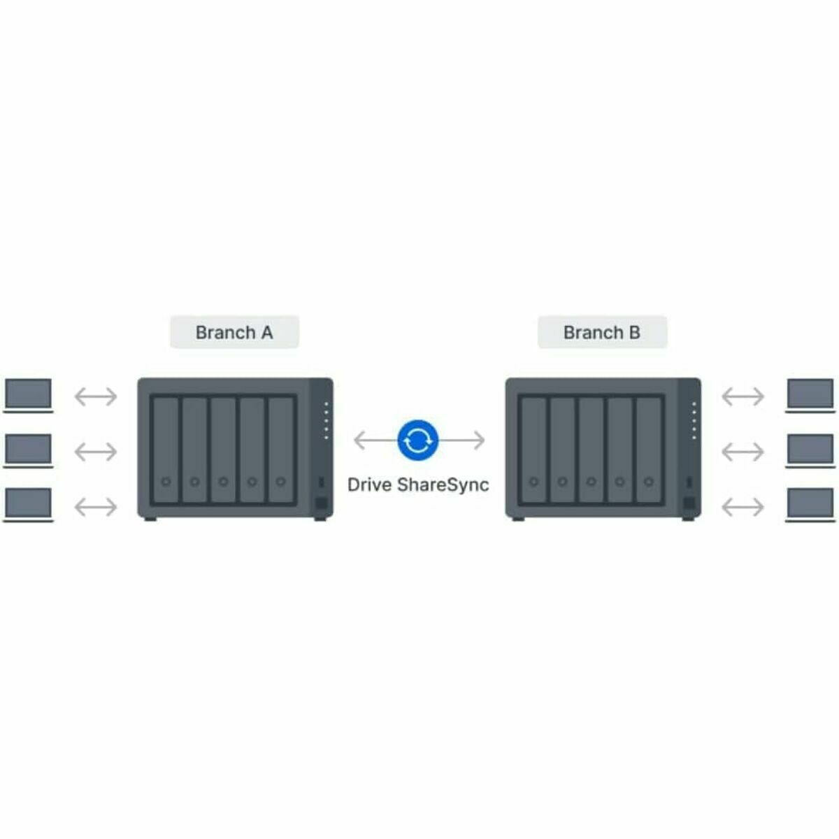 The Synology DS1525+ is an advanced NAS network storage device designed to offer an ideal balance of performance, capacity, and versatility. Equipped with a 4-core 2.2 GHz AMD Ryzen V1500B processor featuring a hardware encryption engine, it ensures efficient data management and advanced security in business and professional environments. It includes 8 GB DDR4 ECC SODIMM memory, expandable up to 32 GB, enhancing stability and performance in multitasking and intensive use. This NAS has five bays for 3.5" SATA hard drives or 2.5" SATA SSDs, plus two slots for M.2 NVMe 2280 SSDs that accelerate cache storage, optimizing data access speed. It supports up to 15 drives by adding two expansion units (DX525), enabling scalable storage growth. For connectivity, this model features dual 2.5GbE RJ-45 LAN ports, multiple USB 3.2 Gen 1 ports, a USB Type-C port, and expansion ports, offering flexibility to connect external devices and extend functionality. Built with a black metal casing for durability, it includes a ventilation system with two 92 mm fans that adjust speed based on usage mode (full speed, cool, or quiet), maintaining a very low noise level of 22.60 dB(A) during operation. It also has front LED indicators with adjustable brightness and supports scheduled power on/off and wake-on-LAN/WAN, features aimed at improving energy management and device availability. Its compact dimensions (166 x 230 x 223 mm) and light weight (2.67 kg) facilitate integration in professional and home spaces. The Synology DS1525+ operates within a temperature range of 0ºC to 40ºC and holds international certifications that guarantee quality and safety across multiple regions. Overall, this NAS combines a solid architecture, high capacity, expansion options, and advanced connectivity, making it a reliable and scalable solution for data storage and management in complex networks.