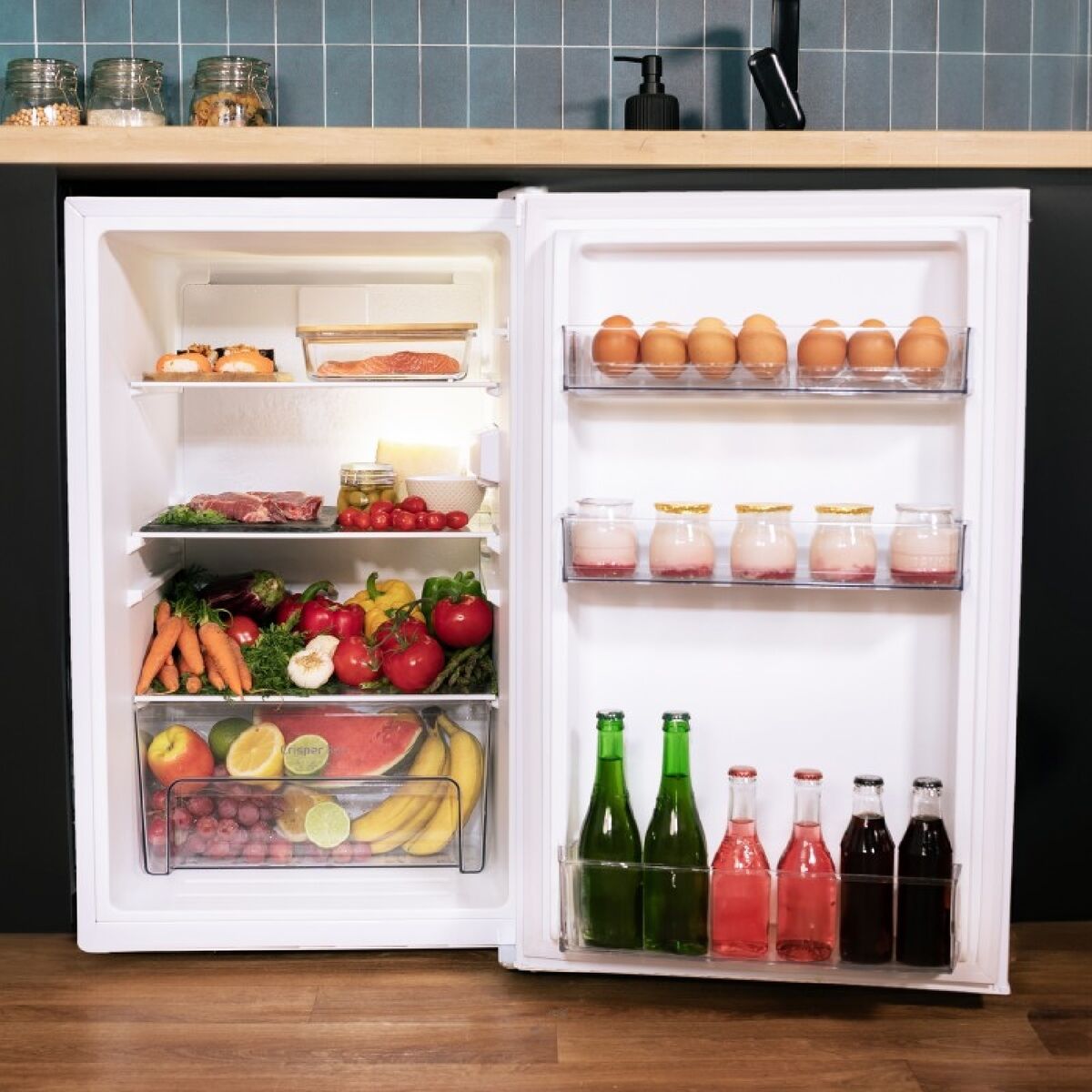 The Bolero CoolMarket TT by Cecotec is a white compact mini fridge designed to offer a notable 114-liter capacity for efficiently keeping drinks and food fresh. With dimensions of 50.6 cm wide, 55.1 cm deep, and 83.6 cm high, this model fits easily into offices, bedrooms, or small apartments. Its energy class E ensures suitable consumption for responsible daily use, while the mechanical temperature control allows precise cooling adjustment via a simple selector dial. Key features include a practical Crisper Box, a drawer specifically for storing fruits and vegetables to keep them fresh longer. To enhance user experience, it includes an interior LED light for clear visibility of contents at all times. The Defrost function simplifies maintenance by automatically channeling defrost water to a drain where it evaporates, eliminating manual defrosting. Its reversible door adds flexibility to adapt to different spaces and orientations. This model comes with a European plug and a sober, functional design aimed at those seeking a practical mini fridge without sacrificing reliable performance and essential features to keep food and drinks fresh efficiently and comfortably. Overall, the Bolero CoolMarket TT is a modern, versatile solution among mini fridges that combines capacity, energy savings, and ease of use.
