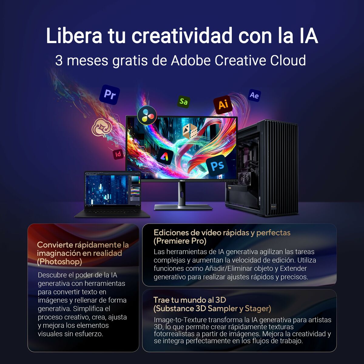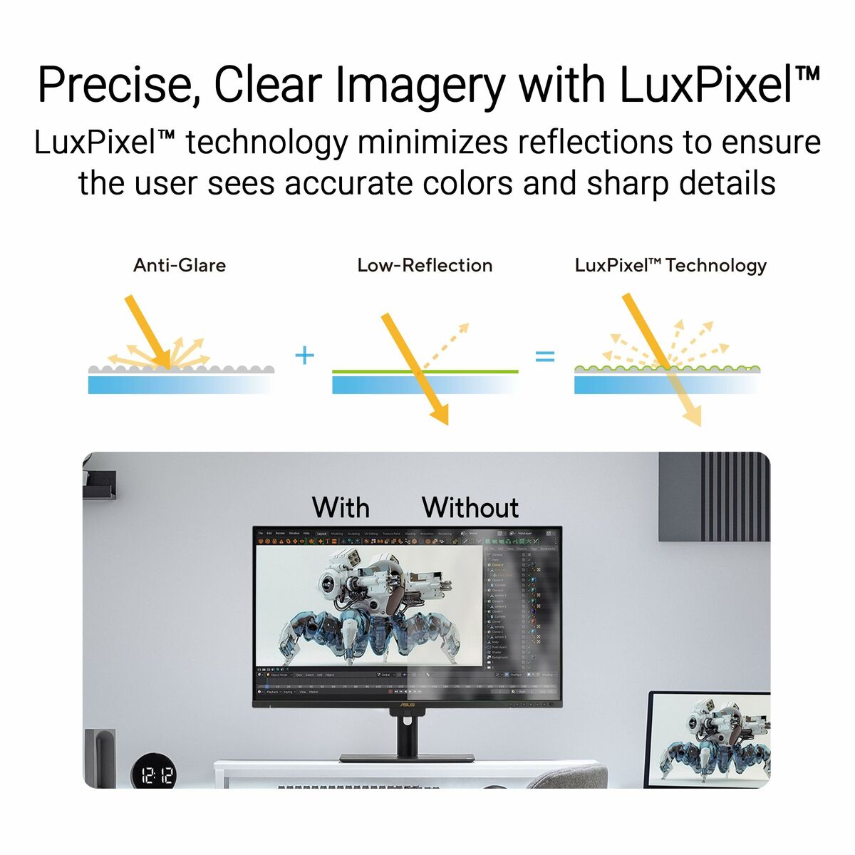 The Asus 90LM04NC-B01K71 monitor features a 27-inch LED screen with IPS technology, ensuring accurate color reproduction and wide viewing angles, ideal for tasks requiring color fidelity and prolonged use without losing visual quality. This model includes Flicker Free technology, which reduces screen flicker to minimize eye strain during long computer sessions. Its 1 ms response time allows for fast and smooth transitions, making it suitable for design professionals and gaming enthusiasts who demand blur- and lag-free images. The black design offers a sober and elegant finish that easily fits any work or entertainment environment. Overall, the Asus 90LM04NC-B01K71 meets the needs of users seeking a versatile, efficient monitor with technologies that enhance visual comfort and performance across various tasks.