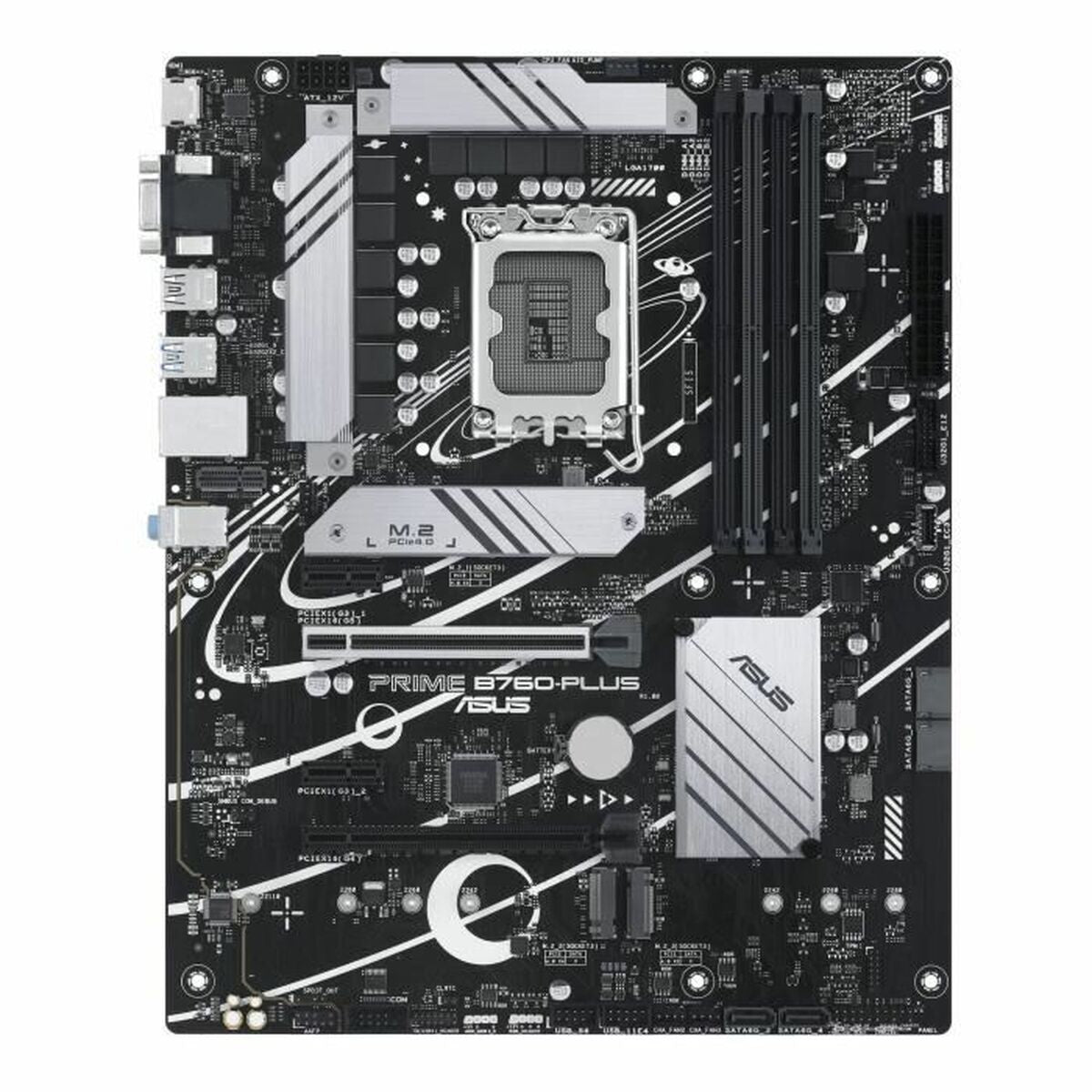 The Asus PRIME B760-PLUS Motherboard is a key component for building a high-performance computer aimed at users who need the latest technology and advanced compatibility. This model is built on the Intel B760 chipset, providing updated support and stability for processors compatible with the LGA 1700 socket, ideal for modern Intel CPU generations. Its ATX form factor ensures a sturdy and spacious structure that facilitates optimal component layout and better thermal management. Key technical features include DDR5 memory compatibility, enabling higher speeds and greater bandwidth for demanding tasks, contributing to smoother overall performance. It also includes next-generation interfaces like PCIe 5.0, preparing the board for graphics cards and storage devices with high speeds, ensuring extended upgrade potential and future-proofing. For connectivity, it offers HDMI outputs and USB-C ports, making it easy to connect modern monitors and external devices requiring fast data transfer or power supply. It is also compatible with traditional PCs, ensuring versatile use across different setups. Supporting up to 64 GB of RAM, this motherboard meets the needs of users working with intensive applications or advanced multitasking. Thanks to its design and features, the Asus PRIME B760-PLUS represents a balanced solution for professionals and enthusiasts seeking a solid foundation for next-generation systems, combining performance, stability, and updated connectivity options in a reliable and versatile motherboard.