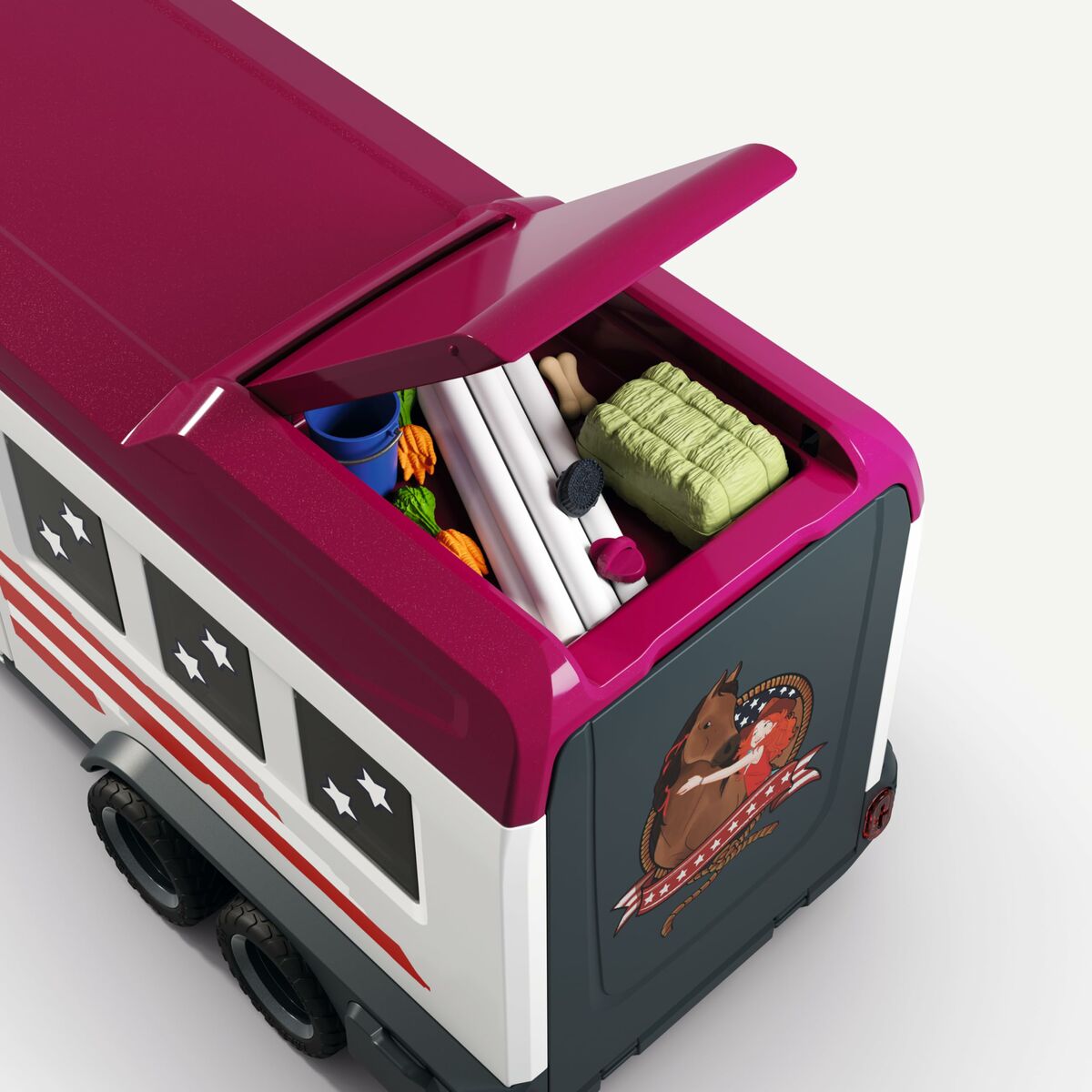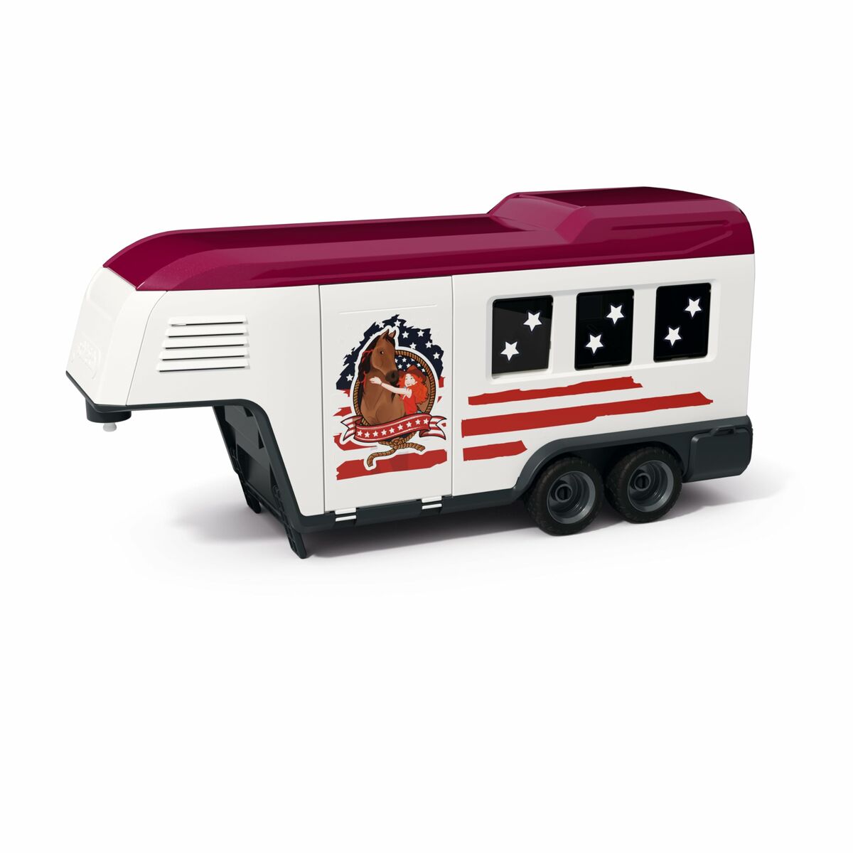 The Action Figure from the renowned brand Schleich features a detailed large horse trailer and pickup truck from the Horse Club Series SCH42705, designed to offer a realistic and educational play experience. This set is made with high-quality materials such as PVC and plastic, ensuring durability and resistance for extended use. Its finish in brown, red, and multicolor contributes to an authentic and attractive appearance that fits perfectly into equestrian activity scenes, allowing children to recreate and encourage their imagination around horse care and transport. It is suitable for children aged 5 years and up, ensuring the size and design are safe for handling. Additionally, this product is offered in original and unopened condition, guaranteeing the quality and integrity of the item at the time of purchase. The combination of quality materials, detailed design, and functionality makes this truck and trailer figure a standout piece within Schleich’s range of educational and collectible toys, ideal for those looking to complement their Horse Club world with realistic and sturdy accessories.