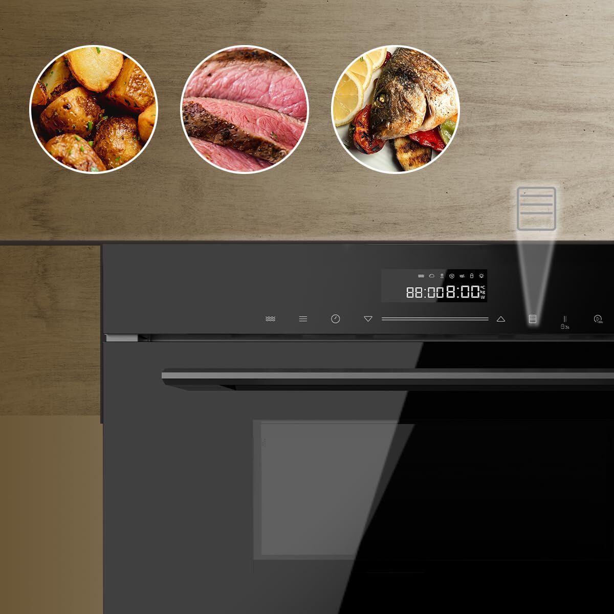 The Bolero Hexa MWO703800 from Cecotec is a built-in microwave oven designed to offer versatility and efficiency in the kitchen with a capacity of 34 liters, ideal for preparing large dishes or considerable quantities in one go. This microwave combines traditional oven functions with microwave advantages, allowing different cooking techniques thanks to its microwave mode, grill mode, and convection mode. The grill function with a top heating element enables even browning and gratinée of food, while the convection mode ensures effective preheating and uniform cooking, similar to a conventional oven. Among its features is the fast defrost function (Defrost), which facilitates immediate preparation of frozen foods. For ease of use, it includes a built-in touch panel that allows convenient selection of various options and preprogrammed automatic menus, automatically adjusting time and temperature for precise, hassle-free cooking. Home safety is enhanced with a child lock (Kid Lock), preventing accidental or improper use of the microwave, providing extra peace of mind in homes with children. This model features an elegant black design with interior lighting that allows monitoring the cooking process without opening the door. Its built-in format optimizes space and fits modern, functional kitchens, offering a versatile appliance that integrates efficiency, safety, and multiple functions in one unit. Overall, the Bolero Hexa MWO703800 is a solution that combines oven and microwave features with accessible, practical technology, designed to facilitate and expand daily cooking possibilities.