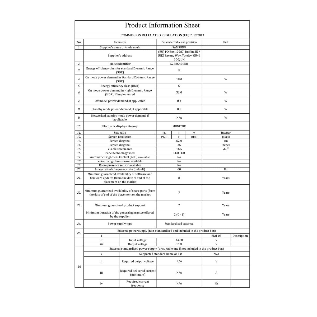 Monitor Samsung LS25BG400EUXEN Full HD 25"