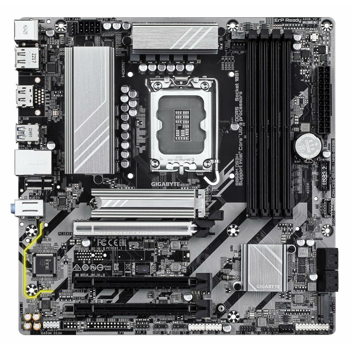 The Gigabyte 9MB86MDS3-00-G10 Motherboard is a solid choice for those seeking a motherboard compatible with modern, compact desktop systems. This board features the Intel B860 chipset, designed to provide stability and balanced performance in systems with the latest generation Intel processors using the LGA 1851 socket. Its MicroATX form factor allows building smaller PCs without sacrificing adequate connectivity or essential features. It includes multiple ports, including up to three USB 2.0 connections ensuring compatibility with a wide range of peripherals and legacy devices, plus an HDMI port for direct connection to digital displays and monitors, ideal for multimedia or professional environments. Equipped with Gigabit Ethernet, it ensures a fast and stable network connection for office tasks, browsing, or basic gaming. Its sturdy build and reliable materials are reflected in an approximate weight of 1 kg and a brown-toned design that fits the common internal component aesthetic. Manufactured in China under Gigabyte’s quality guarantee, this motherboard is a practical and functional solution for assembling compact, affordable PCs compatible with the broad Intel hardware ecosystem. In summary, the Gigabyte B860M DS3H offers an efficient and versatile technical base to configure systems with good connectivity and moderate performance in MicroATX format.