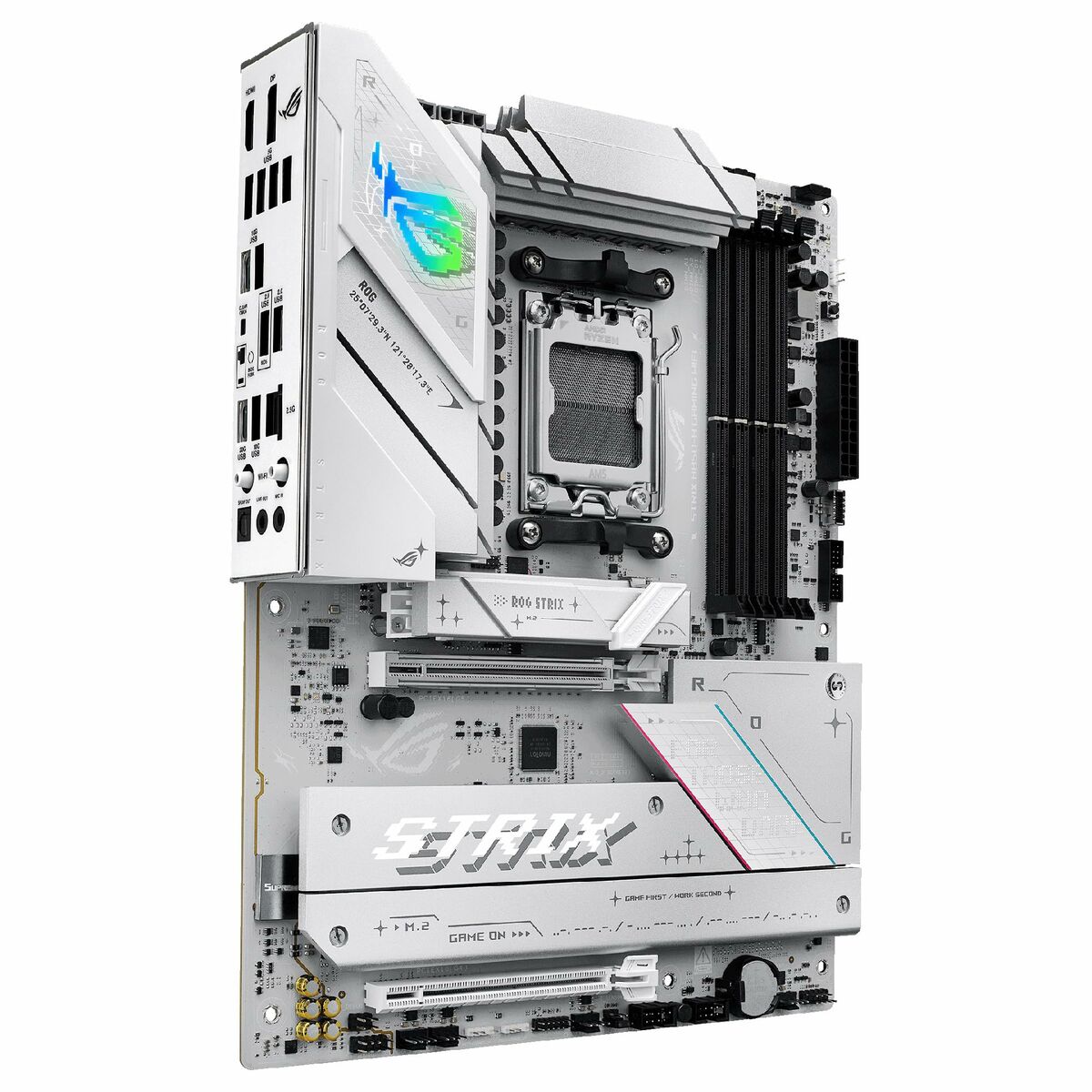 The ASUS ROG STRIX B850-A GAMING WIFI motherboard is an advanced motherboard designed for high-performance systems featuring processors with the AMD AM5 socket. Based on the AMD B850 chipset, this board offers a robust and modern architecture compatible with the latest PC standards, ideal for gaming setups and demanding applications. With an ATX form factor, it provides ample space for component installation, enabling proper thermal management and expansion options. Its connectivity includes multiple USB and USB-C ports, ensuring optimal transfer speeds and versatile peripheral compatibility, along with an HDMI output for easy integration with displays and multimedia systems without extra hardware. This model features a functional white design that adds a modern look and visual freshness in transparent cases or custom builds. The package includes an installation guide, making setup straightforward for both advanced users and beginners. Thanks to its features, the ROG STRIX B850-A GAMING WIFI targets users seeking a solid foundation to build PCs with the latest AMD technology, optimizing both performance and wireless connectivity through integrated ROG technologies. Overall, this motherboard represents a balanced choice that combines the power of the AMD B850 chipset with a versatile design ready to meet current demands in the PC components market.