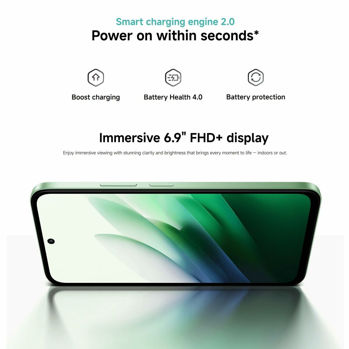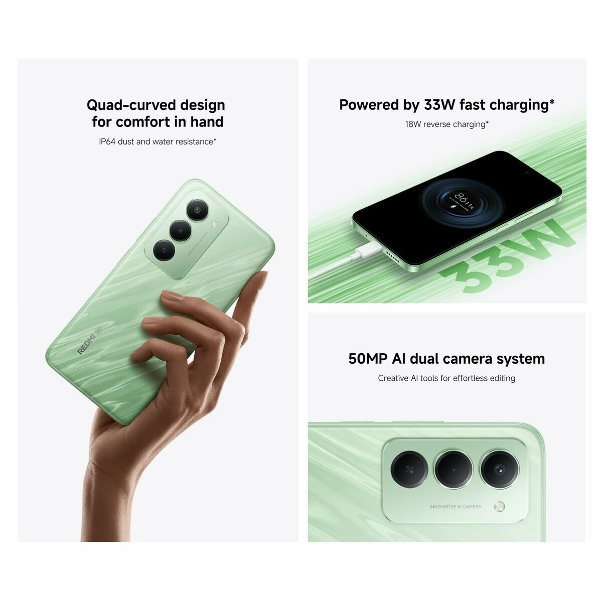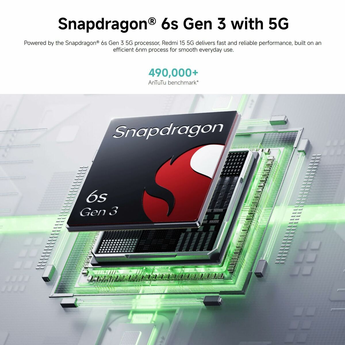 The Xiaomi Redmi 15 5G is a smartphone that combines remarkable power with long-lasting battery life and an immersive visual experience, designed for users who need performance and autonomy. It features an impressive 7000 mAh battery, which thanks to advanced silicon and carbon anode technology offers ultra-long endurance and stays on standby even at 1% charge, allowing calls to be made and received when other devices would be off. The 33 W turbo fast charging and 18 W reverse charging functions increase the device’s versatility, turning it into a portable power bank for other gadgets. Its 6.9-inch FHD+ display delivers clear, bright images with TÜV Rheinland certification for comfortable viewing and Wet Touch 2.0 technology that ensures responsive touch control even with wet or dirty fingers. Performance is powered by the efficient Snapdragon® 6s Gen 3 5G processor built on a 6 nm process, ensuring smooth daily tasks and 5G connectivity that meets current demands. It also includes 8 GB of RAM and 256 GB of storage, providing space and speed for apps, multimedia, and data. Its design features a quad-curved rear cover that enhances ergonomics and a camera housing decorated with aluminum alloy for a modern, refined look. For photography, it is equipped with a 50 MP AI dual camera system that captures sharp, detailed images, improving the quality of everyday memories. Additional features include a set of modern sensors, including an ambient light sensor, and water and dust resistance with IP64 certification, protecting the device against splashes and dust. The Redmi 15 5G is a balanced choice for those seeking a robust device with long battery life and current features that support continuous daily use.