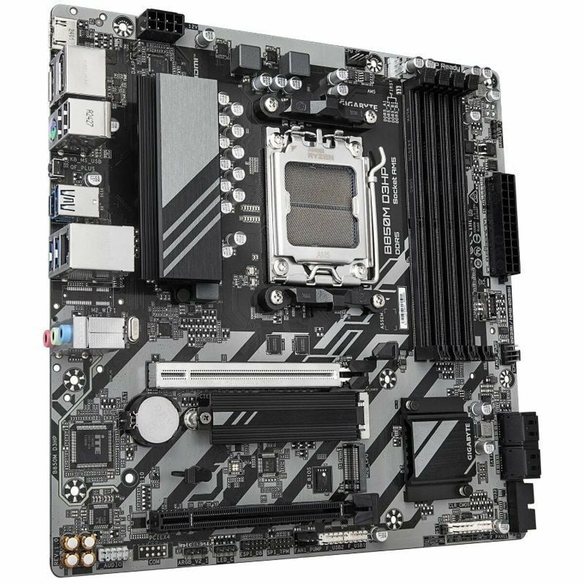 The Gigabyte motherboard with AMD B850 chipset is designed to provide a robust and modern platform compatible with the latest processors using the AMD AM5 socket. Its MicroATX form factor offers an ideal balance between functionality and space, allowing compact PC builds without sacrificing the connectivity and expansion needed for a high-performance system. Thanks to support for current technologies associated with the AMD B850 chipset, this motherboard provides a solid foundation for PCs aimed at both professional tasks and entertainment, ensuring stability and energy efficiency. Additionally, its compatibility with standard PC components ensures versatility and ease of integration in various configurations. In summary, this Gigabyte motherboard represents a balanced option for users seeking reliable performance and the benefits of the AMD AM5 ecosystem in a compact format.