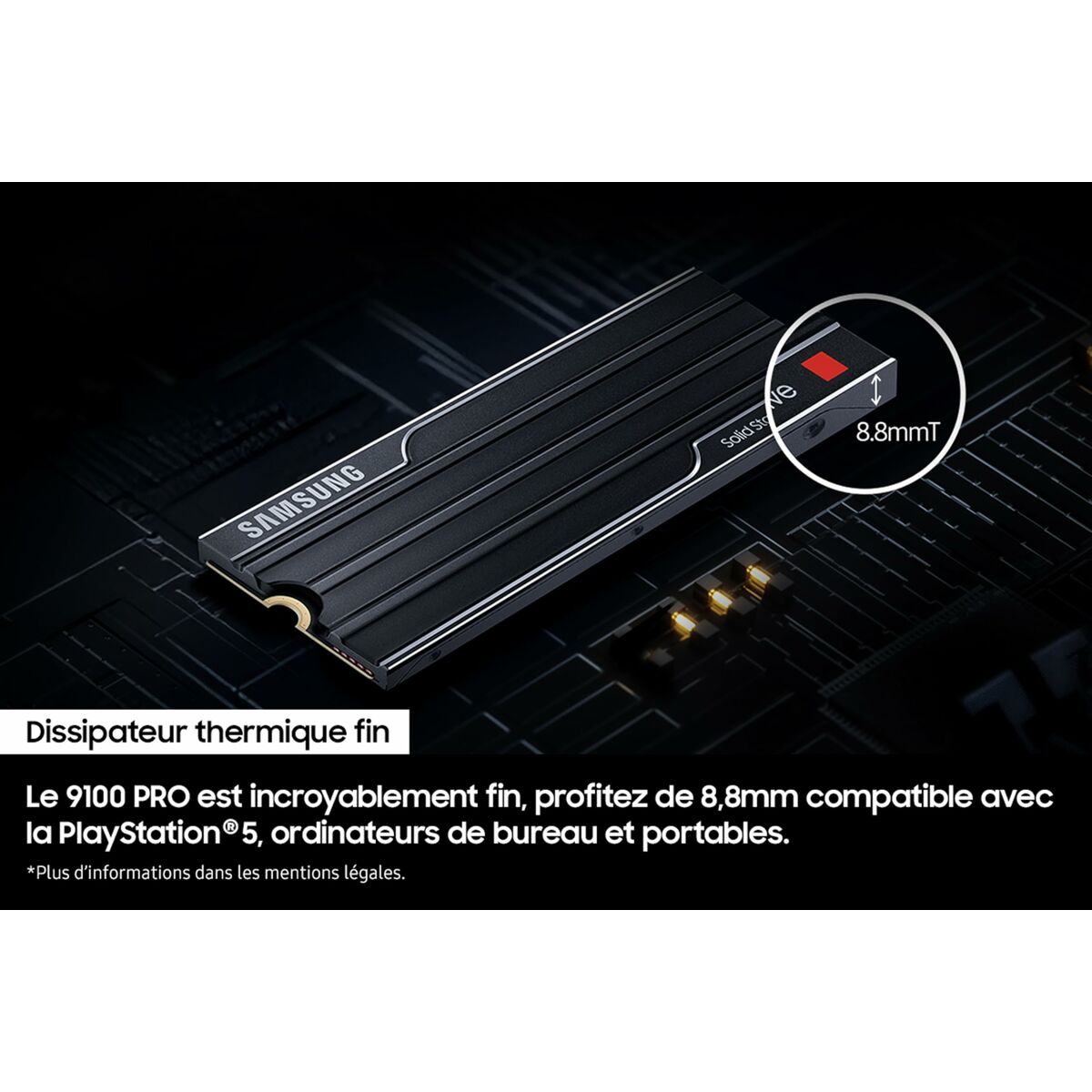 The Samsung SSD with a 1 TB capacity is an advanced storage solution designed for users who need speed, reliability, and ample space in a compact form. This drive features an M.2 interface, providing a direct connection to the motherboard, which reduces latency and improves data transfer compared to traditional drives. It is also compatible with cutting-edge PCI Express 4.0 and PCI Express 5.0 technologies, ensuring exceptional read and write speeds, ideal for demanding applications such as video editing, high-performance gaming, and professional environments requiring fast access to large data volumes. Its black color offers a sleek, professional finish that integrates easily into any setup. As an SSD, it provides greater shock resistance and lower power consumption than mechanical hard drives, while significantly reducing boot and application load times. Overall, this Samsung drive combines large capacity with current interface technologies to deliver fast, efficient, and durable storage, suitable for high-performance PCs and workstations.