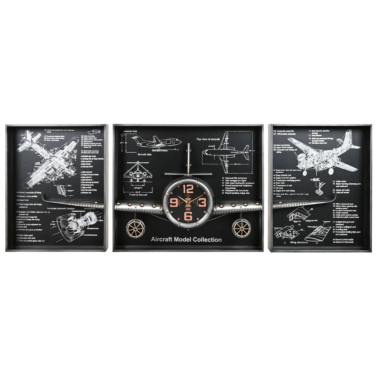 Wall Clock Home ESPRIT Golden Silver Metal Aeroplane Vintage 175 x 21 x 64 cm